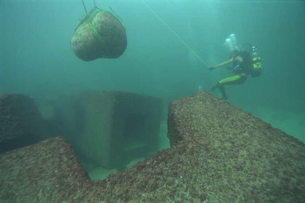 On route to rediscovering the great Pharos, archaeologists were in awe of the size of the huge blocks in the bay of Alexandria. Source UNESCO