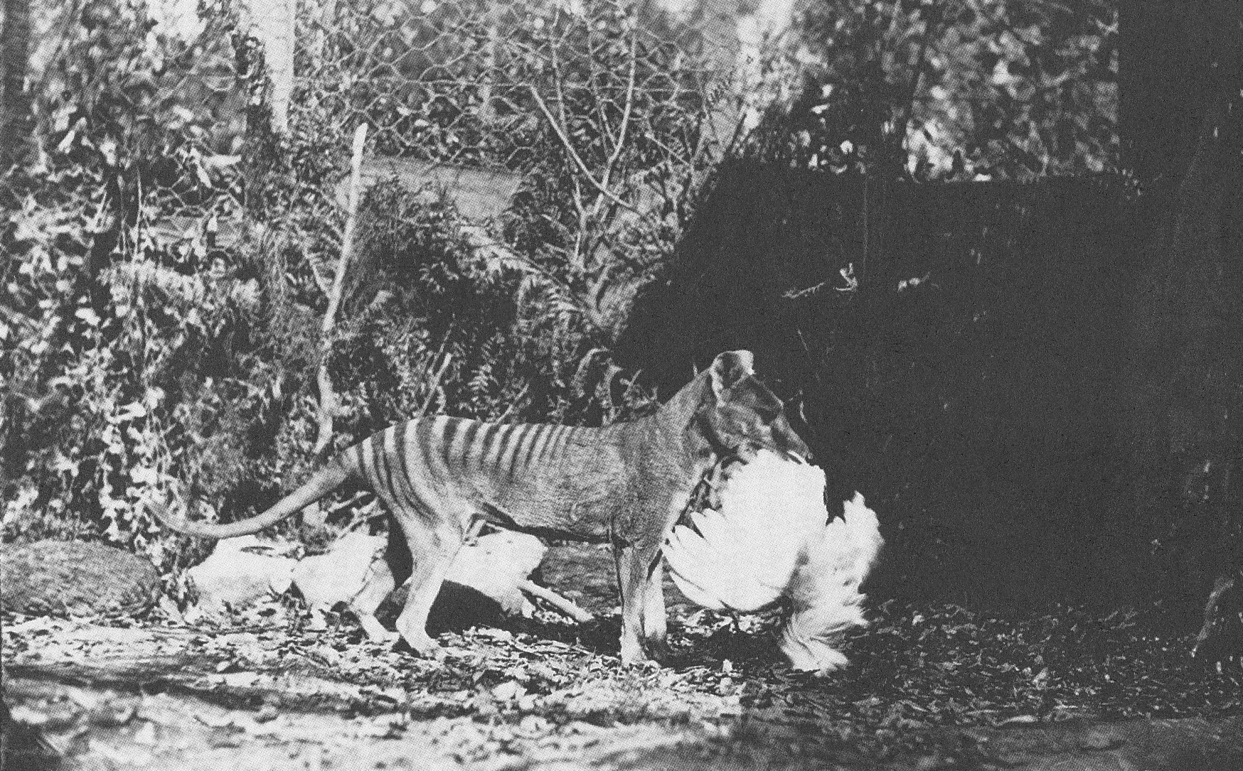 The last known thylacine “Benjamin” is pictured here above at Beaumaris Zoo in 1933.