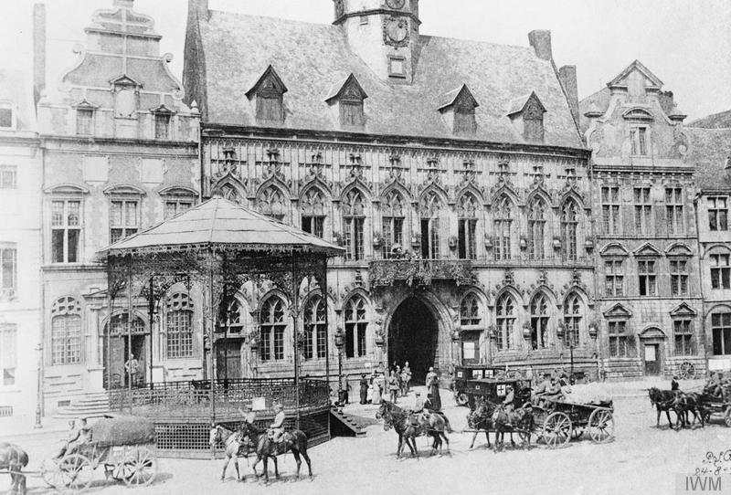 Today the square where the German army marched through in 1914, has no real reminders of the toll of German occupation during the First World War. The pavilion structure in the B&W picture is long gone, but the main square still retains its old charm. The square today is also home to many cafes and restaurants, as well as the Town Hall. The marvelous gothic style Town Hall building attracts visitors all year around. Often they come to touch the head of the small iron monkey statue that stands near the front entrance of the Town Hall. Apparently, when its head is touched, it is supposed to bring you good luck. The central square is also beautifully paved in the fashion of most old cities. Furthermore, unlike the marching German army of 1914, the centre square doesn’t allow cars to pass through it. It is protected for the exclusive use of pedestrians and markets.