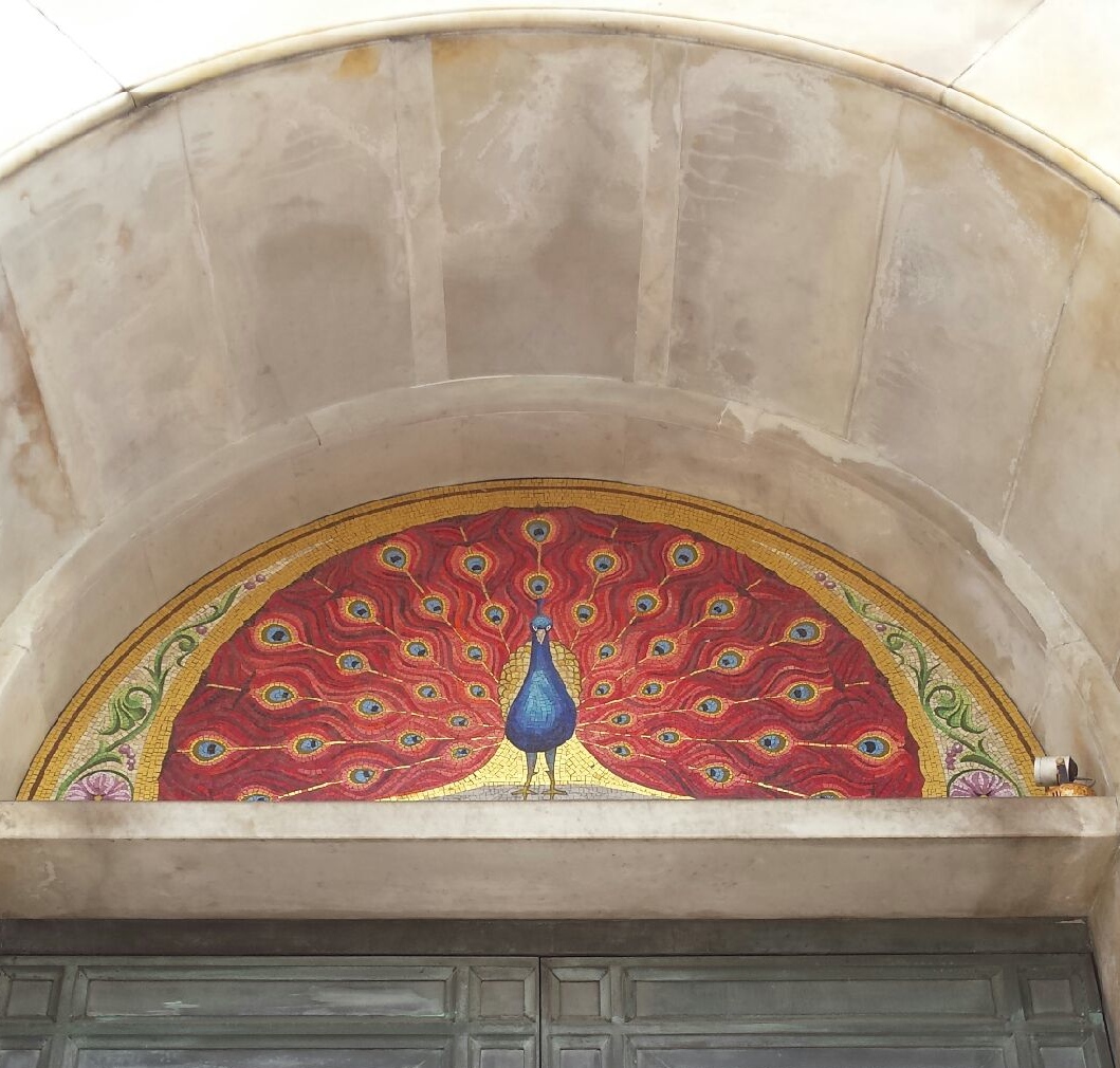 But perhaps, the peacock is arguably best viewed as a quintessential symbol of royalty and wealth. A magnificent jewelled peacock throne was thought to have once existed in Northern India during the early part of the seventeenth century, as the greatest example of the peacocks power and status. (It was apparently later plundered in the eighteenth century, as part of a substantial war booty by a Persian king, but subsequently lost forever.) In other examples of its symbol of royalty and wealth, the peacock is often found on the reserve side of Roman coins that feature the Empress. Its feathers were also personal adornments of men’s helmets and other heraldic devices. Even Marie Antoinette was known to wear ostrich and peacock plumes in her hair. During the Byzantine era, peacocks occasionally decorated the gardens of wealthy Byzantines where they allowed them to roam freely as living exhibits on estates. Finally, although not in the spirit of veneration, wealthy Romans particular liked the peacock as one of their favourite delicacies.