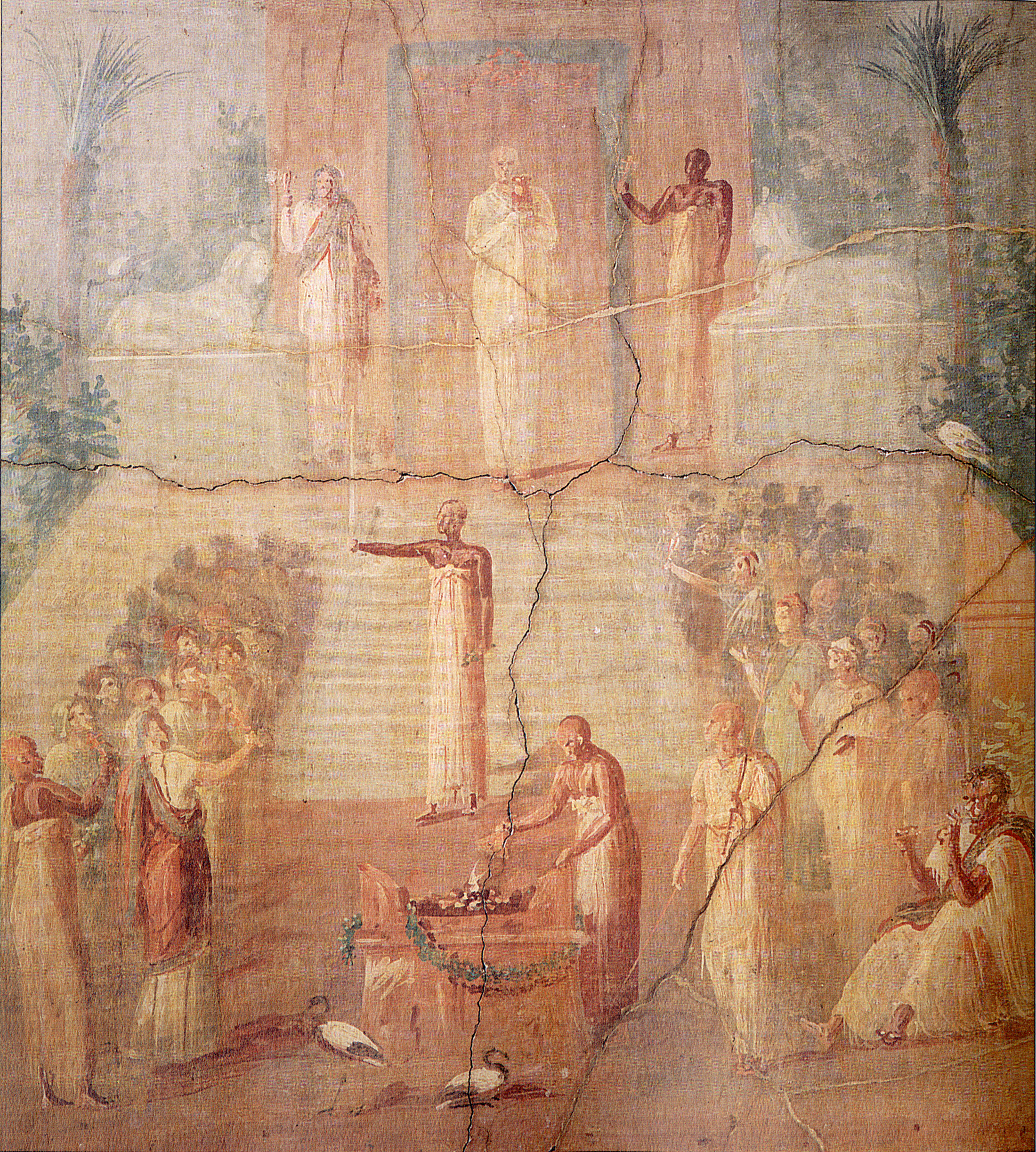 Fresco of the rite of the goddess Isis, Herculaneum, Italy.