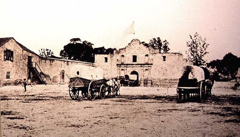 Alamo buildings in use as Army supply depot, circa. 1850-1870.