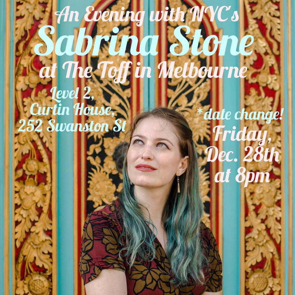 Tickets for Sabrina Stone’s Melbourne show on Friday 28th December at The Toff are available HERE via moshtix. Booking information on her Sappho Sydney show on Saturday 12th January are also available HERE.