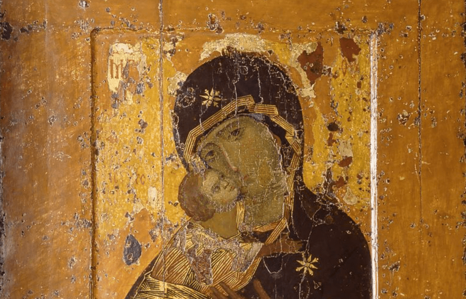 The Our Lady of Vladimir (Theotokos of Vladimir) is a medieval Byzantine icon of the Virgin Mary and Child. It is believed that the Icon was painted in Constantinople, some time during the beginning of the twelfth century, and was sent to the Grand Duke of Kiev as a gift. Soon after the Grand Duke’s death, his son Andrey Bogolyubsky plundered the Theotokos (and many other religious treasures) for arguably his own selfish reasons. Legend has it that along its journey to its new home, the horses transporting the precious icon stopped near Vladimir and refused to move. So it seemed, with the Theotokos left stranded, Bogolyubsky had no choice but to build a magnificent new church (Assumption Cathedral) in Vladimir to safely house the icon. However by 1395, the icon was later taken to Moscow, to protect it from invaders from the east. Today, she is regarded as the face of Russian Orthodoxy and often referred to as the protectress of Russia.
