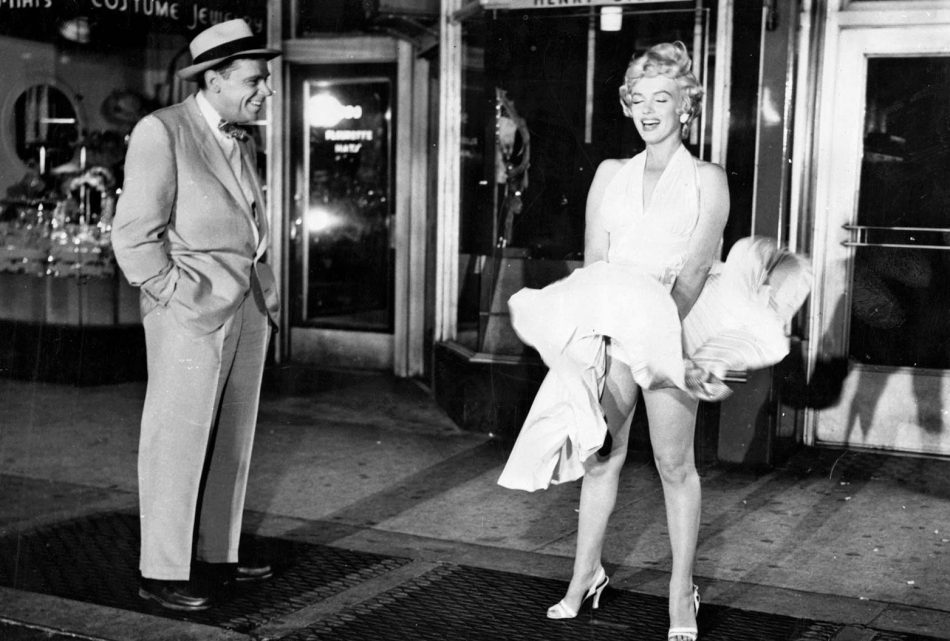 Talking about feeling faint, prior to the scene being shot on a Hollywood set, photographers and thousands of bystanders were treated to a mock night shoot in Lexington, which was cleverly leaked in an attempted to promote the film. That famous night a playful Marilyn delighted a large crowd allowing her white cocktail dress to be caught up over a subway grates breeze while photographers recorded the moment for posterity. At the end of the night there was no doubt whatsoever of the publicity stunts huge success for 20 Century Fox executives. The only bystander it seemed that was unimpressed was Marilyn’s husband Joe DiMaggio. Apparently later that night after the mock shoot Monroe and Di Maggio argued about Marilyn’s provocative behaviour. It probably didn’t come as a surprise to industry insiders when Marilyn filed for divorce soon after.